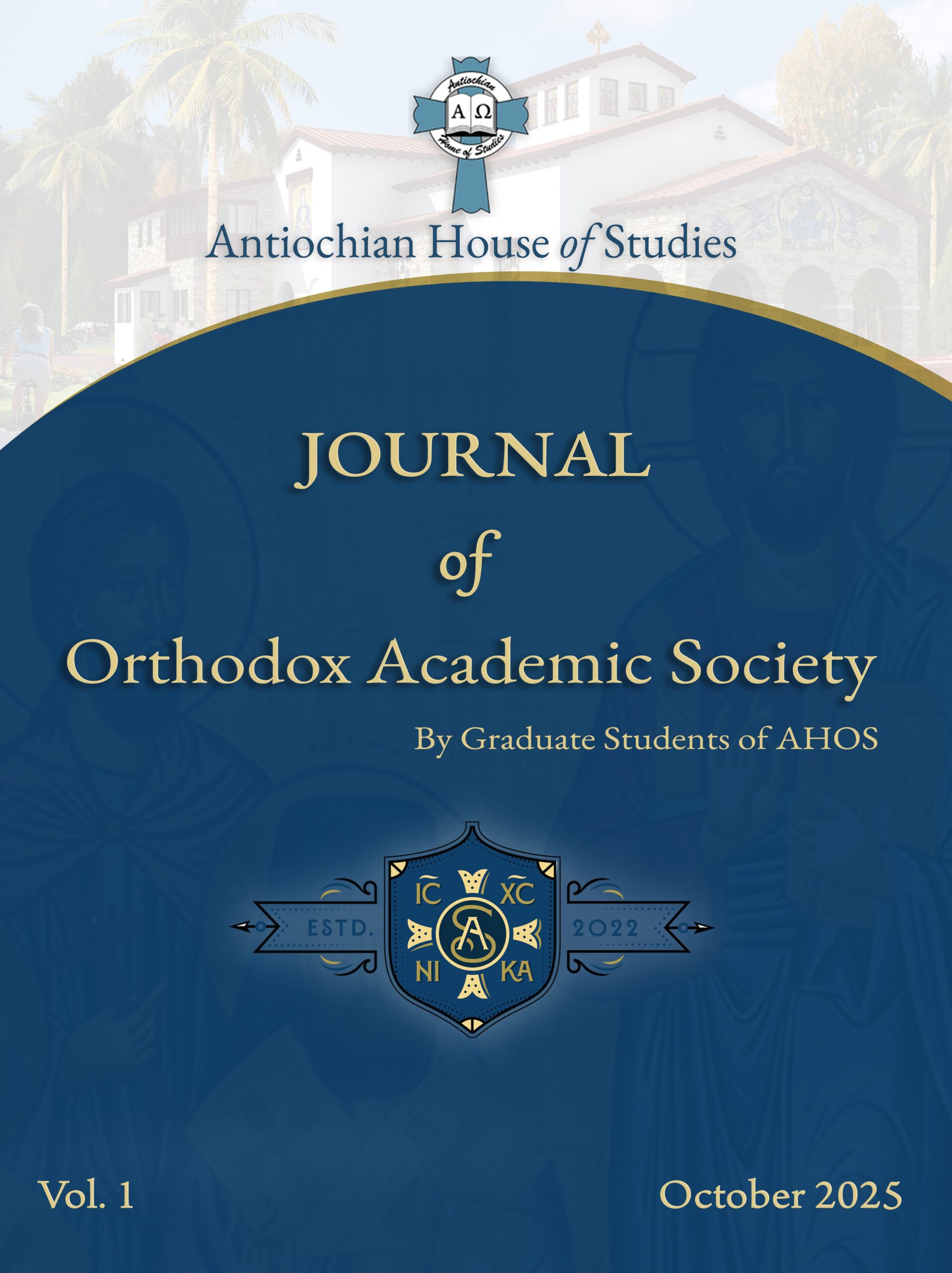 The Orthodox Academic Society Journal (OASJ) is a peer reviewed journal produced by graduate students of the Antiochian House of Studies (AHOS) for public access and distribution. The editorial board consists of PhD students under guidance of the President and the Academic Dean of AHOS. The OASJ consists of select papers that have been presented at OAS Symposia.